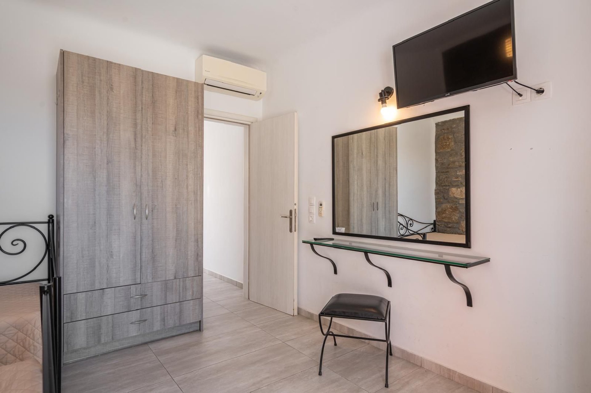 Le camere, completamente rinnovate, sono dotate di aria condizionata, TV, patio privato e angolo cottura attrezzato con frigorifero e utensili da cucina. Ogni unità dispone di bagno privato con doccia e gode di una piacevole vista sul giardino o sulle montagne circostanti, per un soggiorno rilassante e funzionale.